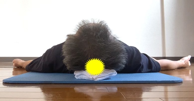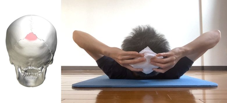 3)準備が整ったらタオルに触れている部分、つまりラムダ縫合の頂点に光の玉があるのをイメージします。そして同時に呼吸を観察します。