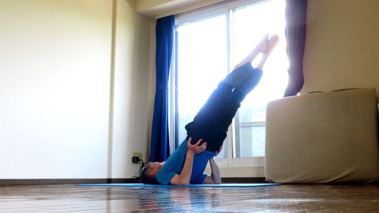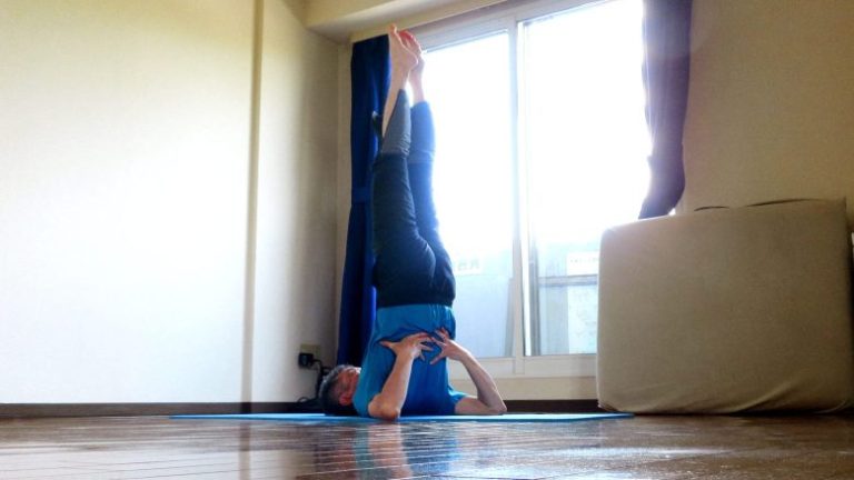 ヨガには逆立ちの他に「肩立ち」というのがあります。サルヴァンガアサナといって、基本ポーズのひとつです。健康増進の代表のアサナで、これをやるとほとんどの身体不調は治るとも言われています。ただし、毎日5分間実践することが前提です!