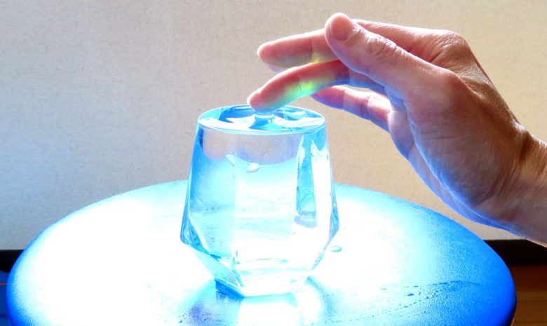 また、クラニオセイクラルは施術の方法を学びたい人のために、手の使い方のトレーニングもおこないます。マイナス0.1mgタッチという極超軽量のハンドコンタクトで触れるテクニックです。指先を水面に触れると、表面張力で3ミリ程度なら水面が指に張りついて持ち上がりますが、そんな感じです。