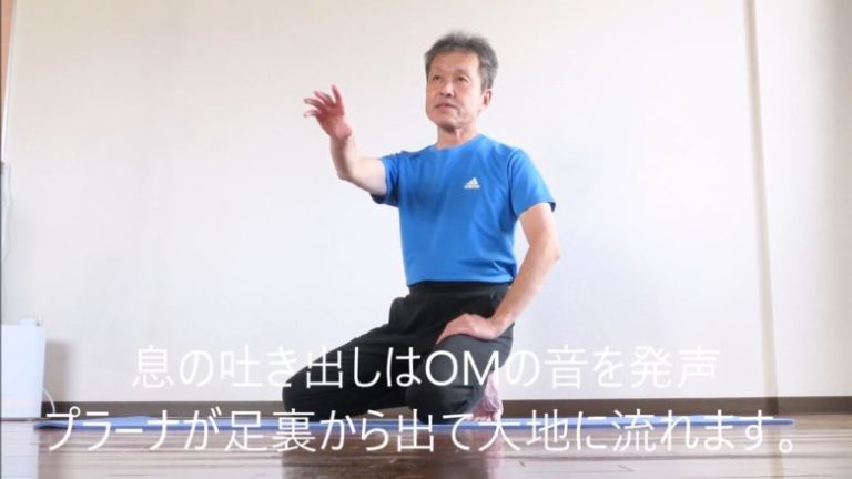 OMの音を発声しながらプラーナが足裏から地面に流れるのをイメージします。